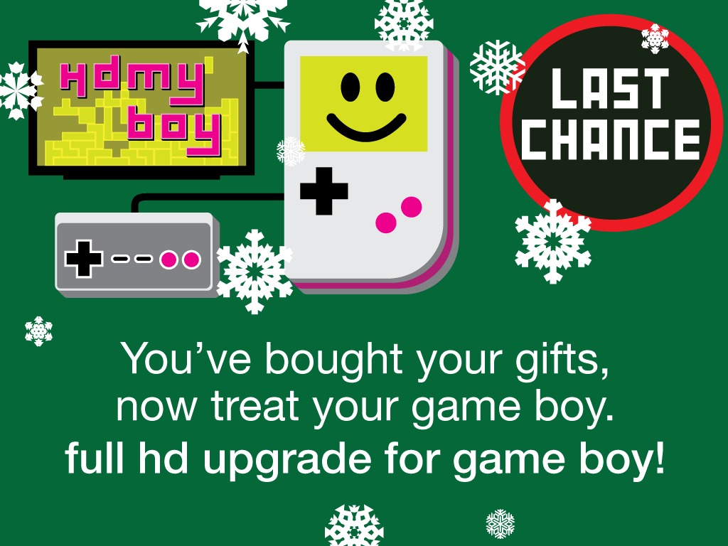 Το hdmyboy είναι ένα από τα πιο τρελά προτζεκτ! Πρόκειται για μια αναβάθμιση για το αρχικό GameBoy του 1989(!) που θα στέλνει την εικόνα σε μια τηλεόραση νέας τεχνολογίας και μάλιστα σε ανάλυση FullHD! Φτιαγμένο από τους αδελφούς Zane Amiralis & Joshua de Haan, είναι ουσιαστικά μια μονάδα που εγκαθιστάτε σε ένα Game Boy Classic. Μέσω αυτής της μονάδας, το σήμα της εικόνας του κάθε παιχνιδιού φτάνει σε ανάλυση 1080p(!) στην τηλεόρασή σας. Επιπλέον, μπορείτε να προσαρμόσετε τα γραφικά επιλέγοντας τις τέσσερις αποχρώσεις του χρώματος που θέλετε σε αντίθεση με την αρχική έκδοση που υποστήριζε μόνο τέσσερις παραλλαγές του πράσινου.  H καμπάνια στο Kickstarter έχει ξεκινήσει ήδη έχοντας συγκεντρώσει